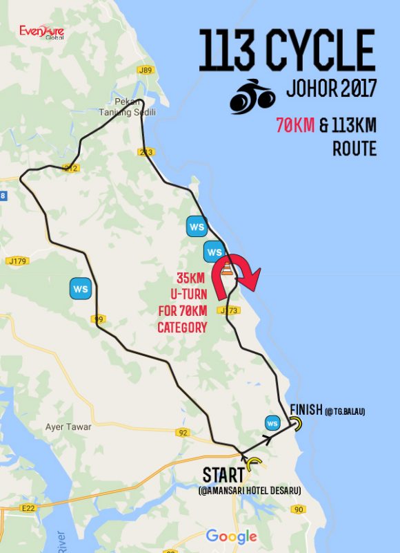 Due to the change in Finishing Point, the route is now extended to 119KM