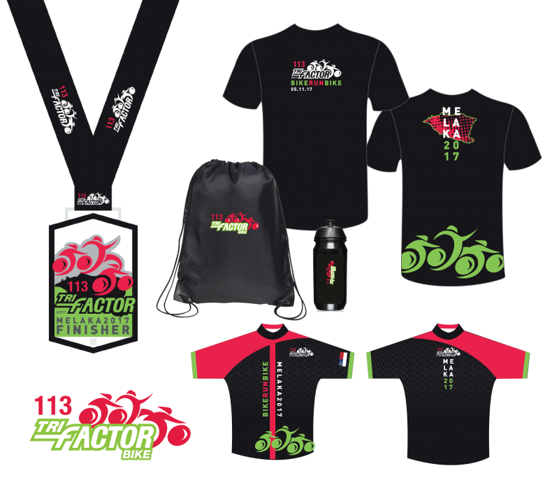 - Exclusive 113 TriFactor Bike-Run-Bike Melaka 2017 Cycling Jersey (only for 113 & Standard category; Sprint & Mini have a top-up option)